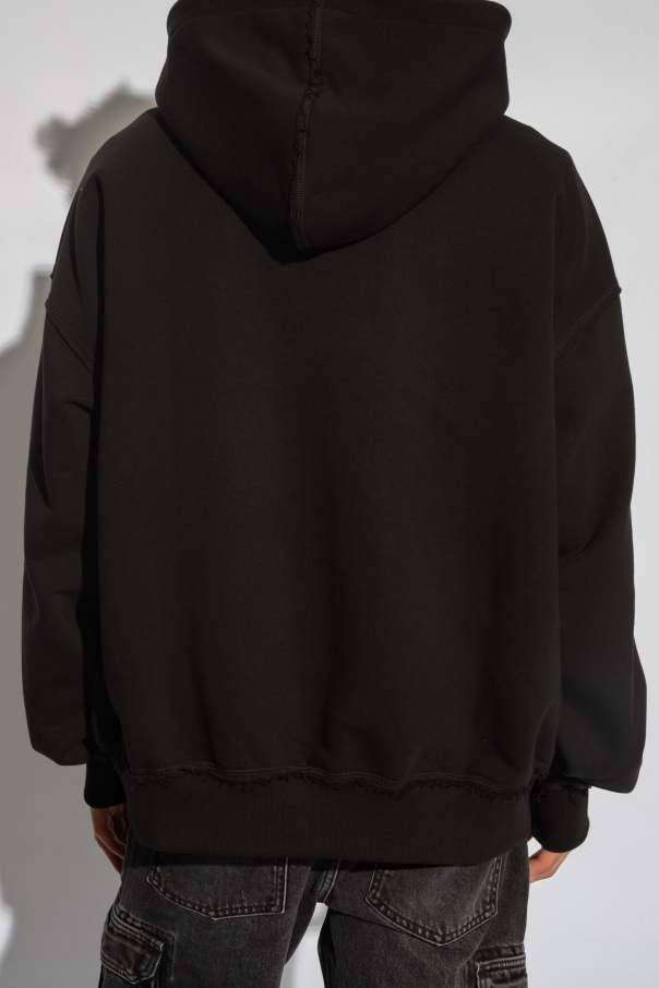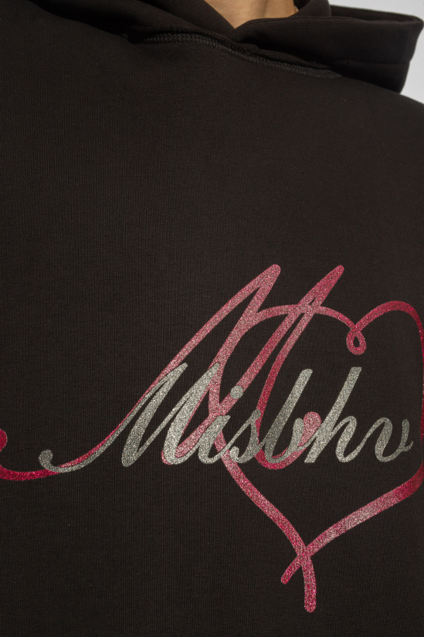 Black ‘I Love’ hoodie from MISBHV, the ‘Clear Light Of Bliss’ collection. Made of cotton, this design features a logo print, raw trims and ribbed trims at the hem and cuffs.