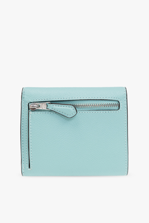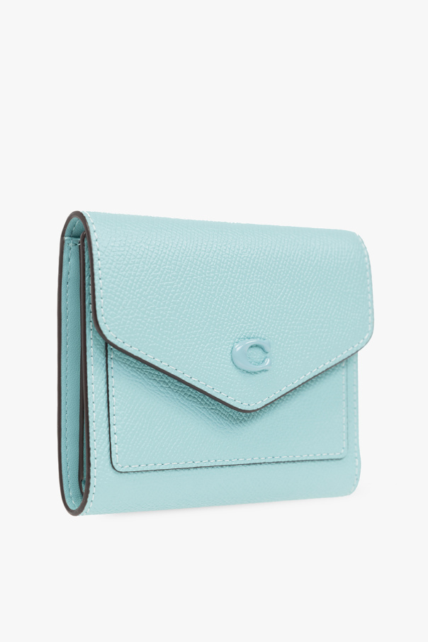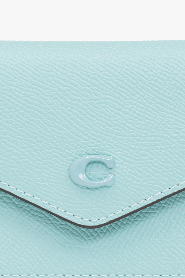 Blue wallet from Coach. Made of leather, this design features a snap closure, logo detail, zipped coin pocket at the back as well as one bill compartment, three slip pockets and seven card slots at the back.