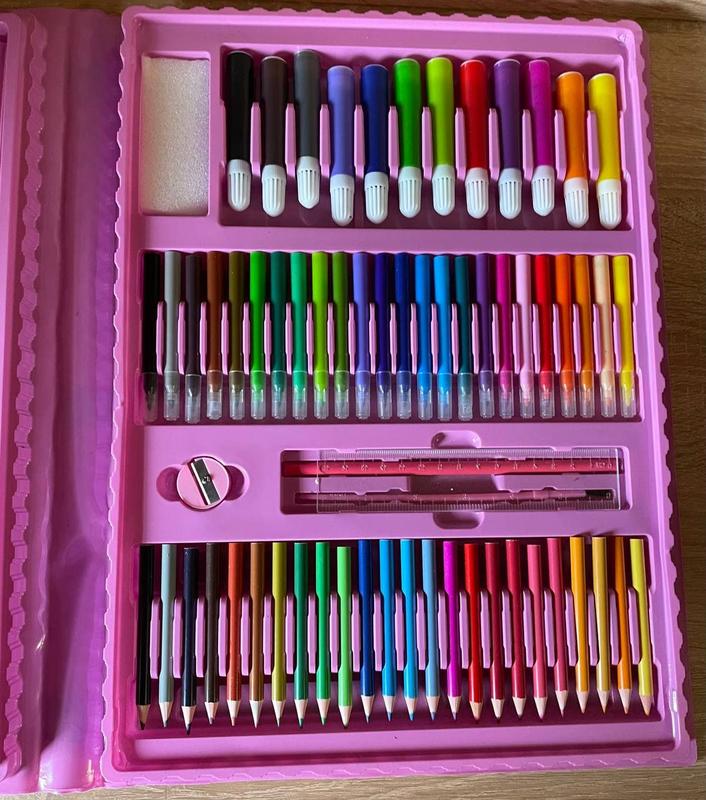 Набор для рисования в чемоданчике 208 предметов подарит Вашему ребенку море положительных эмоций. Любовь к различным аксессуаров для рисования, раскраски и отображения собственных фантазий на бумаге, проявляется у всех детей, начиная с самого юного возраста. Чемоданчик в виде пластикового кейса продуман до мелочей. Он выдвижные полочки, которые хранят в себе все самое необходимое для маленького художника. Каждый предмет сложен в свою ячейку, а это значит, что все будет под рукой и никогда НЕ потеряется. В сложенном виде кейс напоминает чемоданчик, который легко можно использовать как дома, так и в дороге. Кейс раскладывается просто, как книга. Компактный чемоданчик превращается в полноценное удобное рабочее место юного художника. Чемоданчик для рисования удобно хранить и брать с собой.