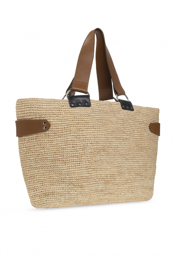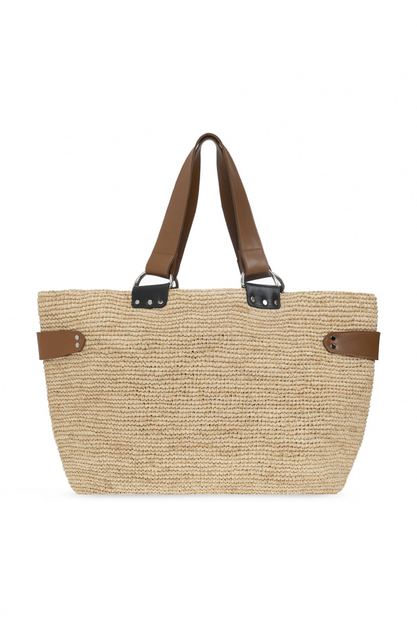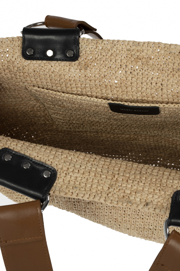 Beige ‘Bahiba’ shopper bag from Isabel Marant. Woven from raffia, this model has two half-round handles, brown and black leather trims as well as one internal compartment with one slip pocket.