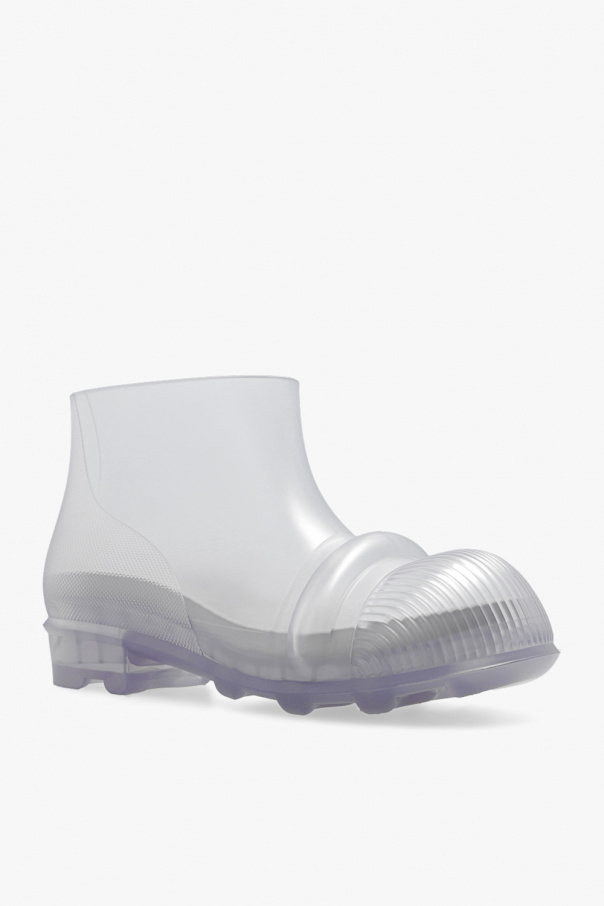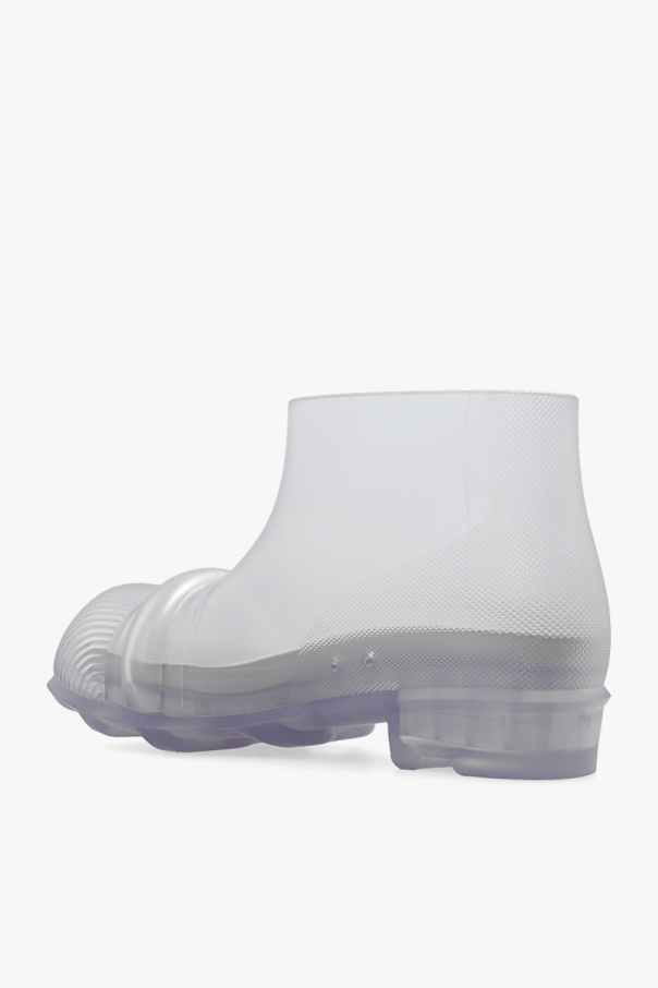 Translucent rain boots from Loewe. Made from rubber, this model features a ribbed toe and a textured back.