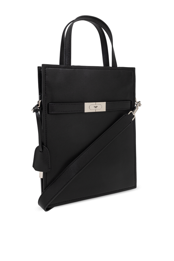 Introducing the ‘Lee Radziwill’ Bag, an epitome of sophistication and functionality. This exquisite shopper, crafted by the renowned Tory Burch, is a testament to timeless elegance and modern design. The bag features a sleek, rectangular silhouette with a vertical construction. It is meticulously crafted from premium leather, exuding a luxurious and refined appearance. The interior is lined with a smooth, high-quality material, ensuring both durability and a touch of opulence. The ‘Lee Radziwill’ Bag is adorned with a silver-toned metal clasp on the front, adding a touch of elegance. The back is designed with a single strap running vertically, complemented by metal accents. A signature key holder on the side serves as a distinctive design element. For added security, the interior boasts a zipper closure, safeguarding your essentials. The subtle designer logo on the metal clasp signifies authenticity and high-class craftsmanship. This elegant yet practical bag is perfect for daily use or special occasions, promising durability and comfort. Why Choose This Product? Exquisite design by Tory Burch Crafted from premium leather Elegant silver-toned metal accents Secure interior zipper closure Distinctive key holder design element