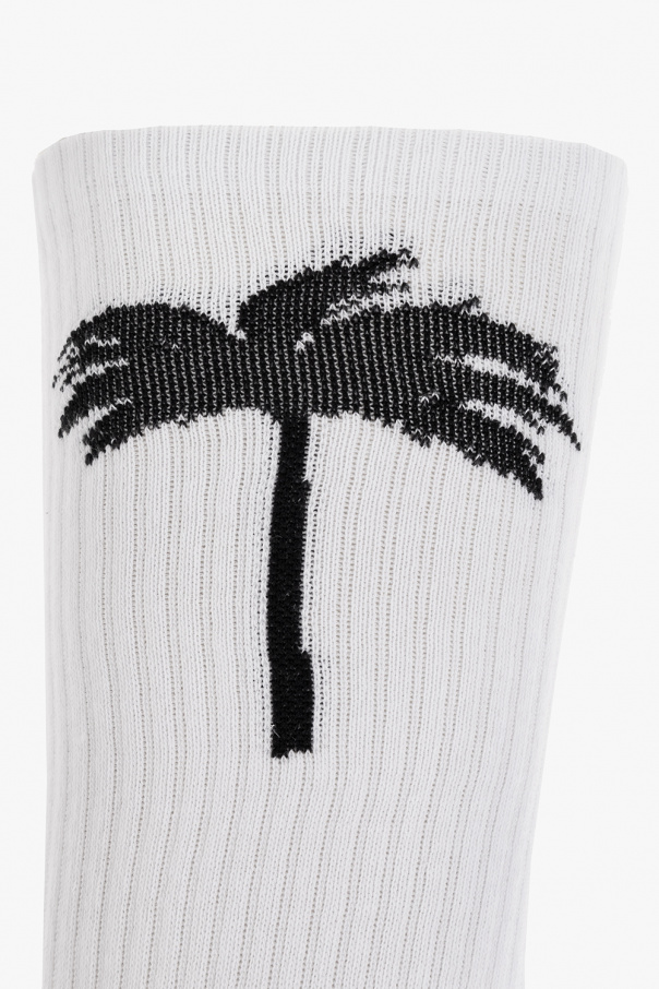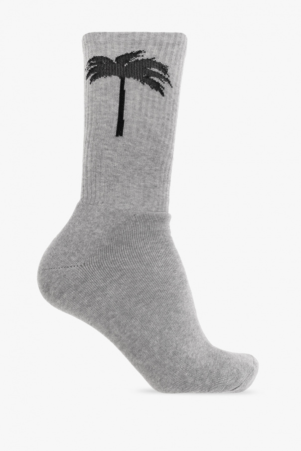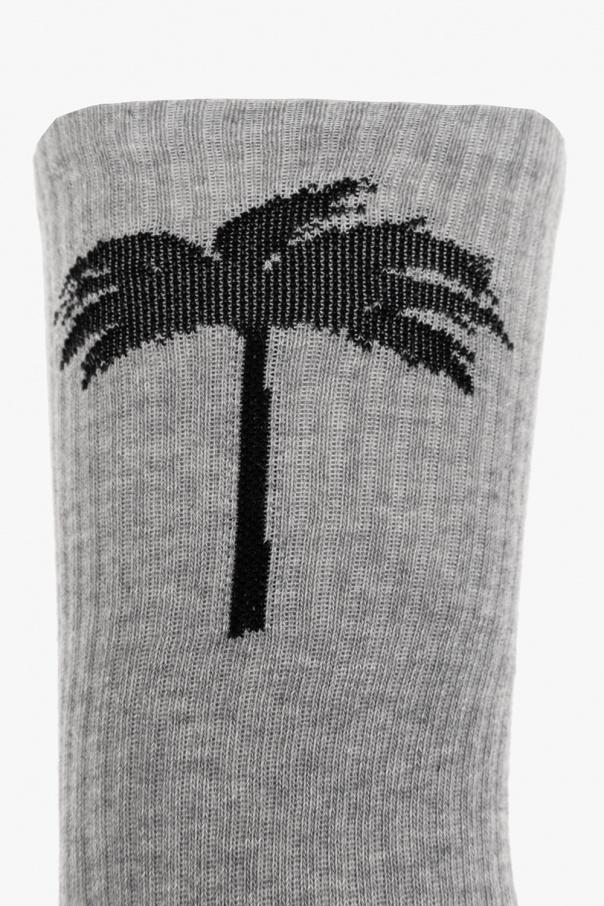 3-pack of socks in white, black and grey from Palm Angels. Crafted from cotton, each pair has ribbed trims and the brand’s signature palm tree embroidery.