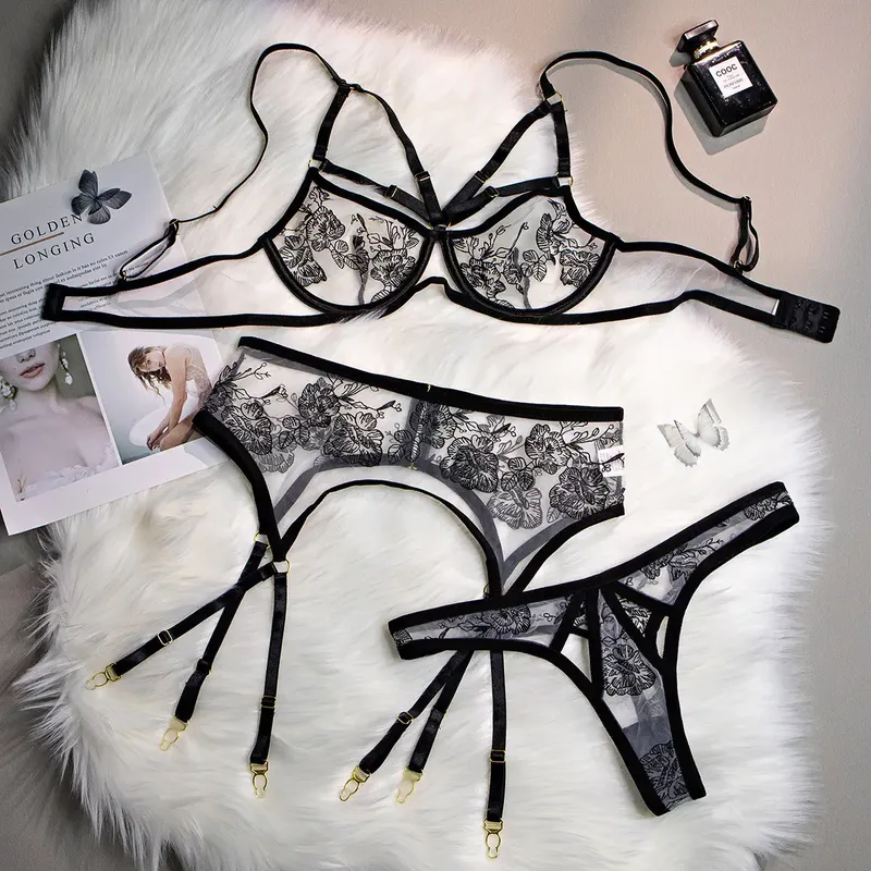 Изысканный прозрачный сексуальный комплект с гартерами💕