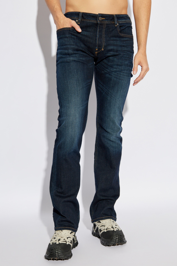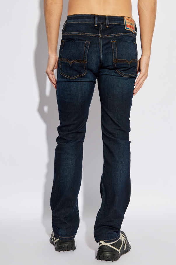 Introducing the Diesel 2007 ZATINY L.34 Jeans, a paragon of sophistication and casual elegance. These jeans are rendered in a rich, deep navy hue, accented with subtle whiskering at the thighs and knees, embodying a timeless bootcut fit that gracefully flares at the hem. Crafted from a sumptuous blend of organic cotton and elastane, these jeans offer unparalleled comfort and flexibility. The classic five-pocket design is accentuated by distinctive orange stitching, while a front mini-pocket proudly displays the iconic \"Diesel Industry\" patch, a testament to the brand\'s esteemed heritage. The back is adorned with a leather logo patch, exuding both style and authenticity. Fastened with a button and zip closure, these jeans seamlessly marry the traditional with the contemporary, making them an exquisite addition to any discerning wardrobe. Why Choose This Product? Exquisite Material: Crafted from organic cotton and elastane for supreme comfort. Timeless Design: Bootcut style in a classic navy, ideal for versatile wear. Distinctive Details: Features the iconic Diesel branding and orange stitch accents. Functional Elegance: Five-pocket design with button and zip closure.
