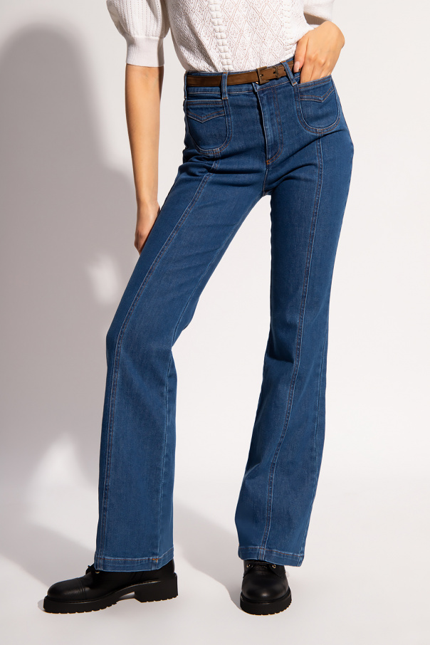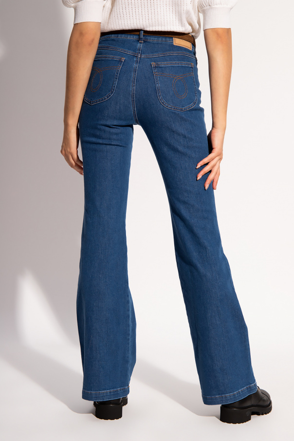 Blue jeans from See By Chloé. Falling down with flared legs, this pair features a zip fly with a button and four slip pockets.