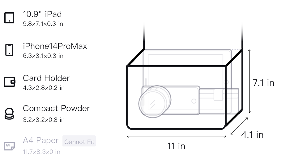 - Size:L*W*H: 11.0*4.1*7.1 in