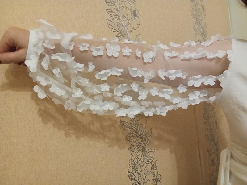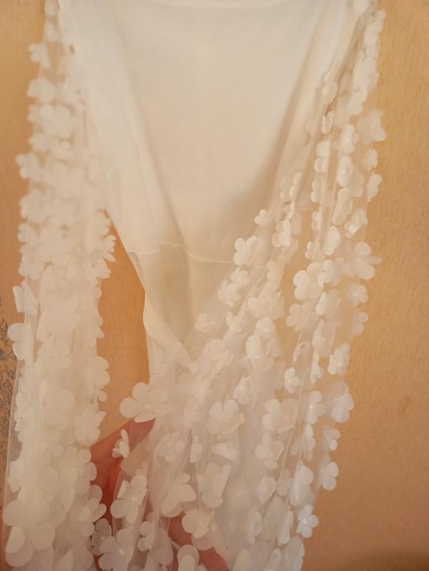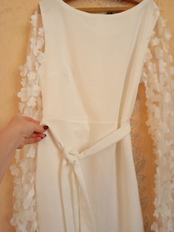 Ніжна сукня. Одягалися один раз. Матеріал трохи тягнеться. Має на спині приховану блискавку. Підійде на розмір 46-48. Заміри: довжина - 108 см, ПОГ під пахвами - 42-43 см, плечі - 38 см, НОТ - 38 см.