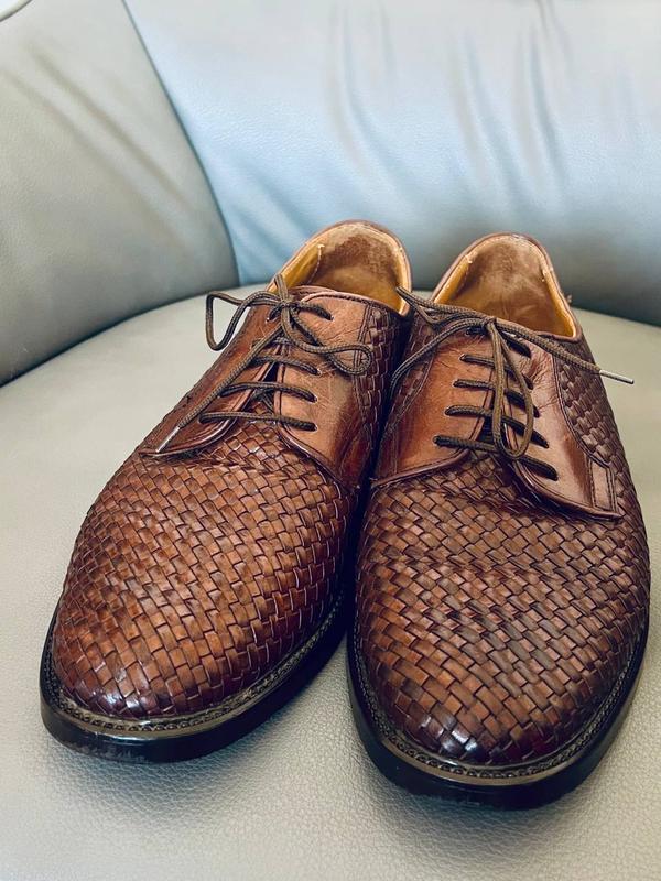 Продаю елегантні чоловічі туфлі італійського виробництва, виготовлені з високоякісної плетеної натуральної шкіри.
