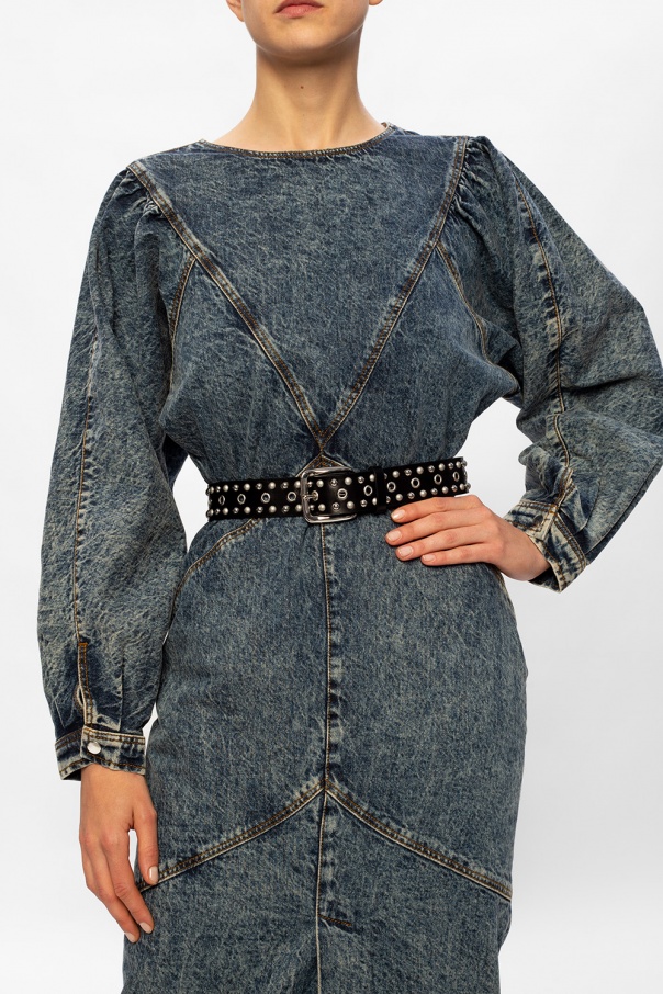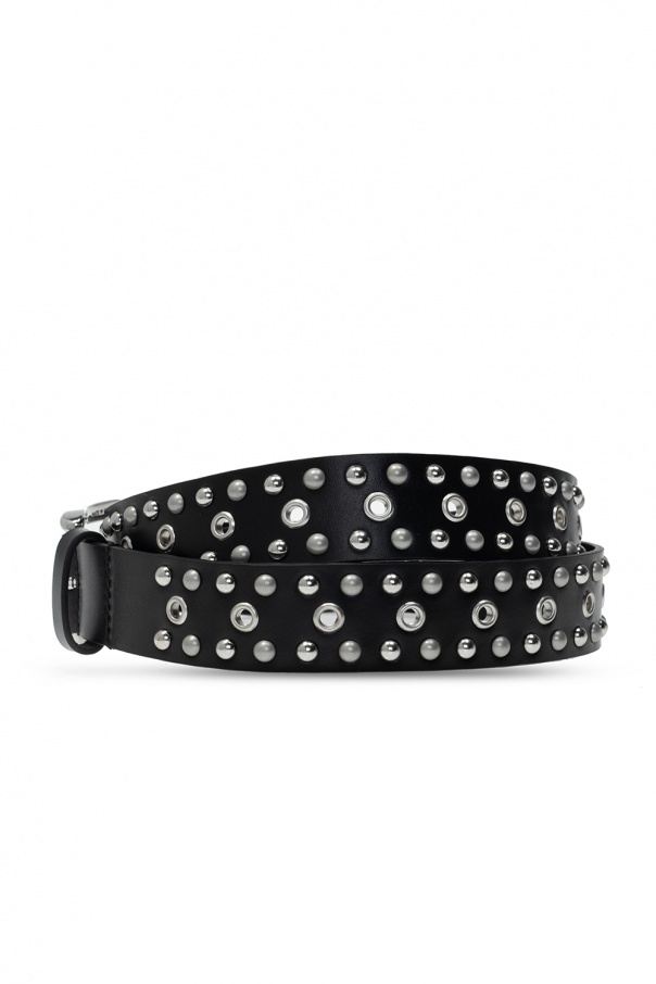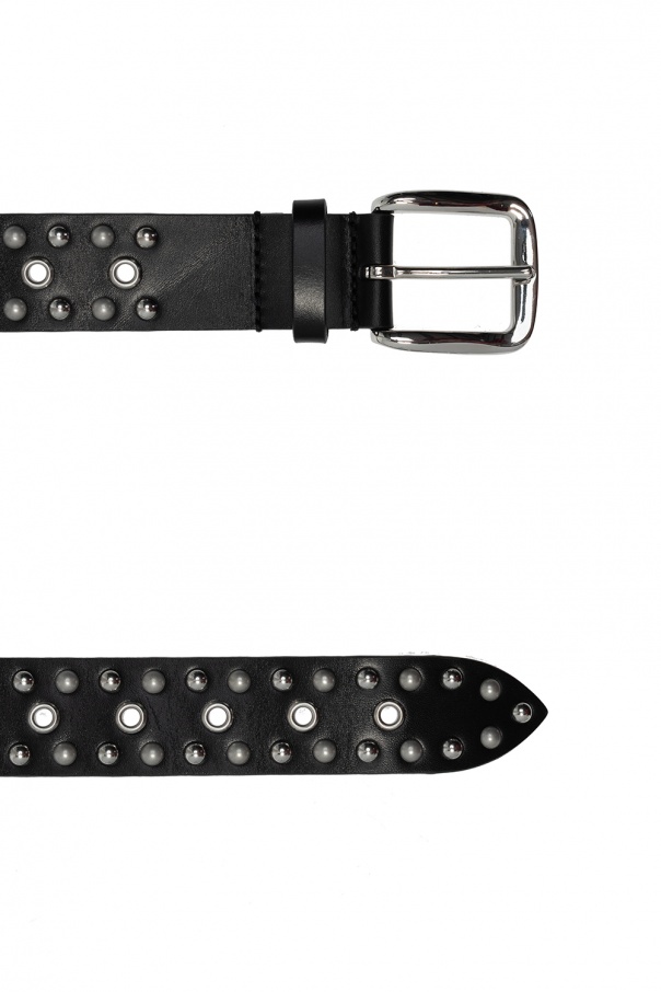 Black belt from Isabel Marant. Punctuated with studs, this cow leather-crafted item fastens via silver-tone buckle closure engraved with the designer\'s logo.