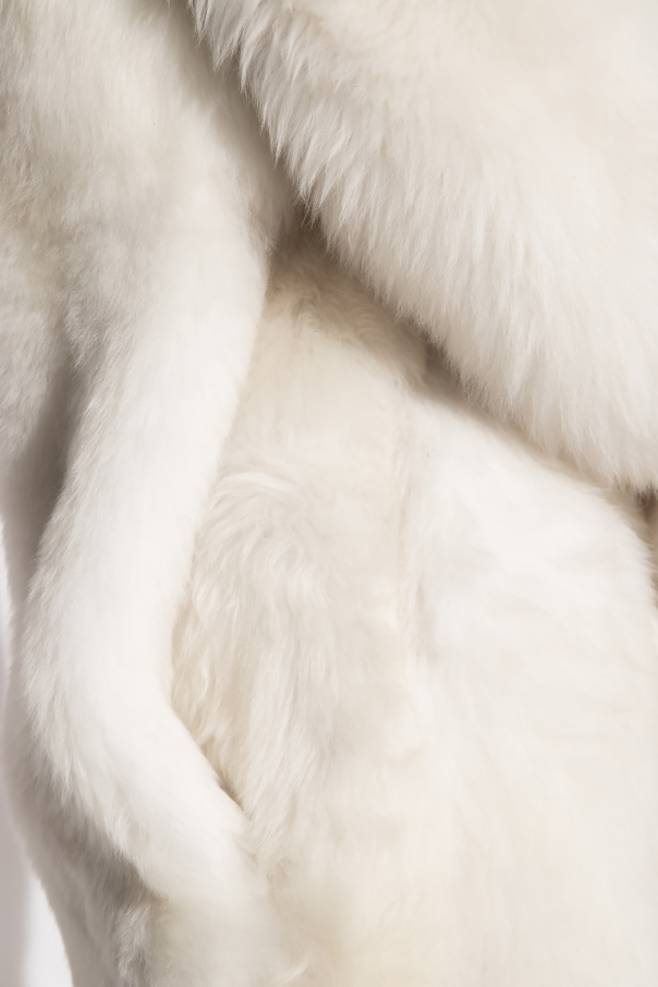 White coat from Lanvin. Made of lamb fur, this garment features hook fastenings wide collar, two pockets and long sleeves.