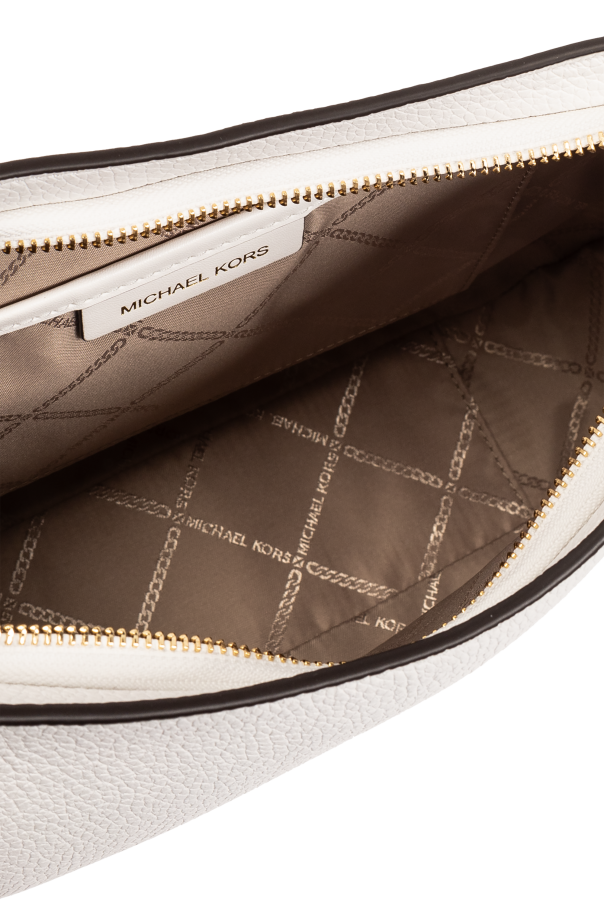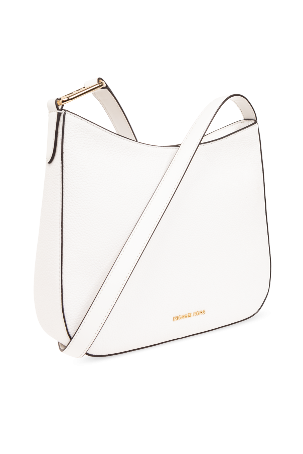 Introducing the \'Kensington\' Shoulder Bag by Michael Michael Kors - a paragon of sophistication and functionality. Crafted from premium leather, this exquisite piece boasts a rectangular shape with gently rounded bottom corners, embodying a soft, modern aesthetic. Its delicate texture and pristine white hue make it a versatile addition to any ensemble, promising to elevate your look with its inherent charm. The bag features a long, adjustable strap, allowing for comfortable shoulder or crossbody wear. Gold metal accents adorn the strap attachments, offering a striking contrast to the bag\'s white surface and infusing it with an air of luxury. A discreet gold logo on the front serves as a subtle nod to the designer\'s prestige, while the rear zip pocket provides a practical space for essentials. Inside, a beige polyester lining with the designer\'s logo showcases meticulous attention to detail and high-quality craftsmanship. With its spacious interior, the \'Kensington\' bag is not only a symbol of elegance but also a testament to functionality, making it an indispensable accessory for the discerning fashionista. Why Purchase This Product? Constructed from high-quality leather for durability and elegance. Features adjustable strap for versatile wearing options. Enhanced with gold metal finishes for a touch of luxury. Includes a practical rear pocket with magnetic closure for easy access. Interior slip pocket for organized storage. Embellished with a subtle designer logo, highlighting its exclusive pedigree.