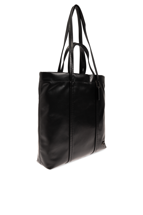Introducing the epitome of sophistication and utility - the Coach Men\'s Shopper Bag. Fashioned from 100% premium leather, this exquisite piece boasts a sleek black hue, symbolizing timeless elegance. Its rectangular, vertical silhouette is the hallmark of the shopper style, designed for the discerning gentleman. The bag\'s seamless exterior is punctuated by a subtle, round designer logo, adding a touch of exclusivity. Accompanied by a branded metal charm, it exudes a refined allure. Inside, the spacious main compartment is lined with a durable material, featuring the brand\'s logotype on a leather label, underscoring the product\'s authenticity and high-end craftsmanship. Long, flat handles offer comfortable shoulder wear, enhancing the bag\'s practicality. Notably, its minimalist design is free from external pockets, ensuring a sleek profile. This shopper bag, void of superfluous elements, focuses on essential functionality and elegant aesthetics. Why Purchase This Product? Unmatched Quality: Crafted from 100% leather, ensuring durability and a luxurious feel. Exclusive Design: Features designer touches like a logo emblem and branded metal charm, setting it apart. Practical Elegance: Spacious interior with a sophisticated, minimalist exterior. Versatile Functionality: Designed for comfort and convenience, perfect for daily use or business occasions.
