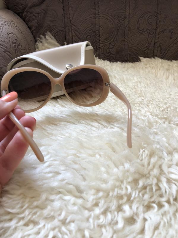 Новые солнцезащитные очки. Оправа бежево- кофейного цвета. Идут в чехле. Подходят и на узкое лицо. Высота 6. Ширина 15,5