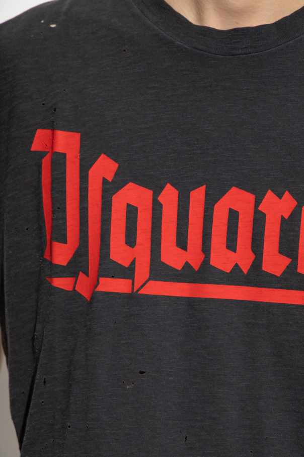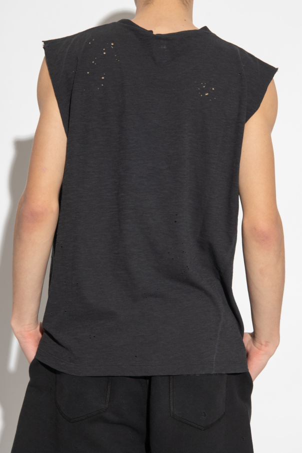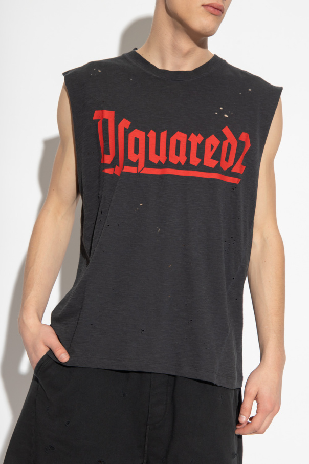 Grey sleeveless T-shirt from Dsquared2. Made of cotton with a vintage effect, this style features an elasticated crew neck and a printed maroon logo.