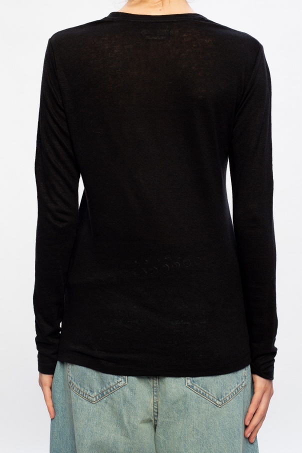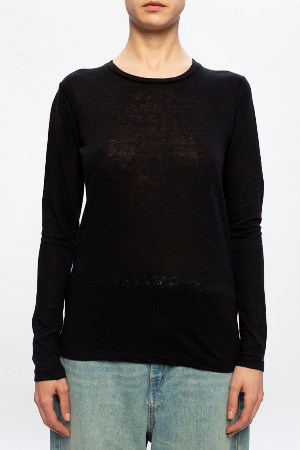 Black top from Isabel Marant Étoile. Made of breathable linen, it has round neck, long sleeves and a timeless design.