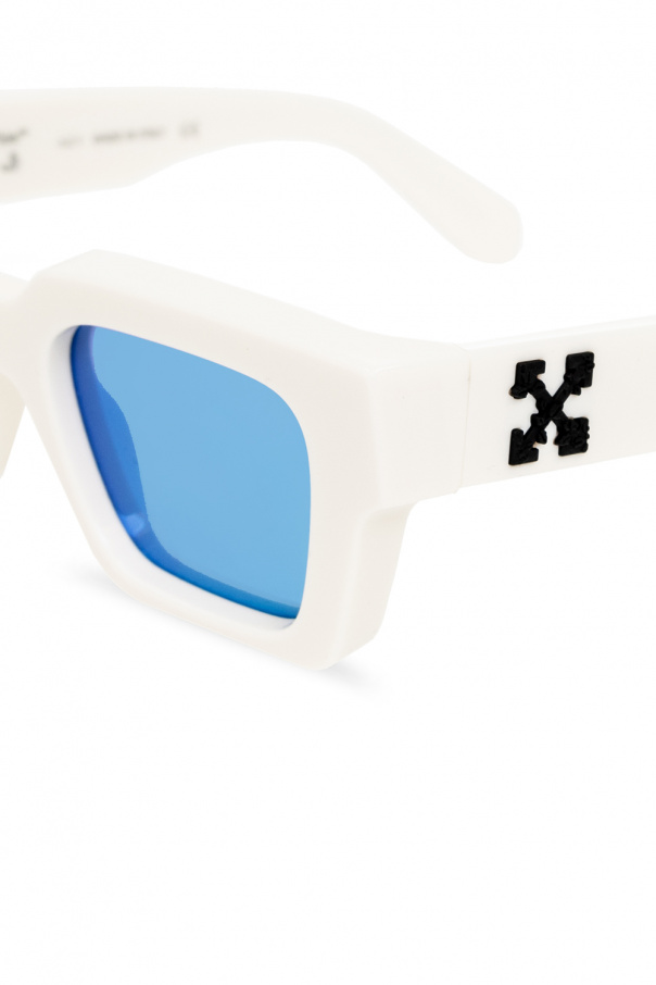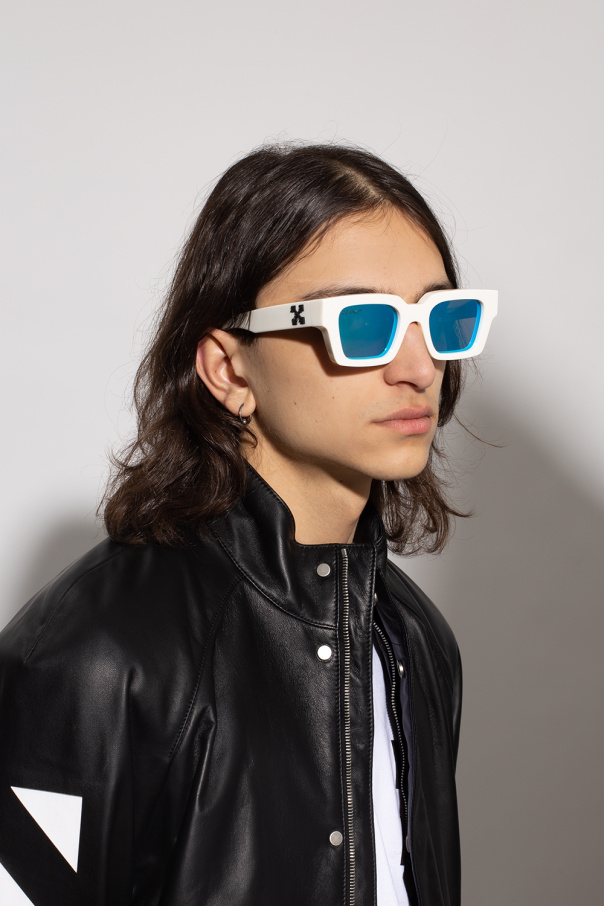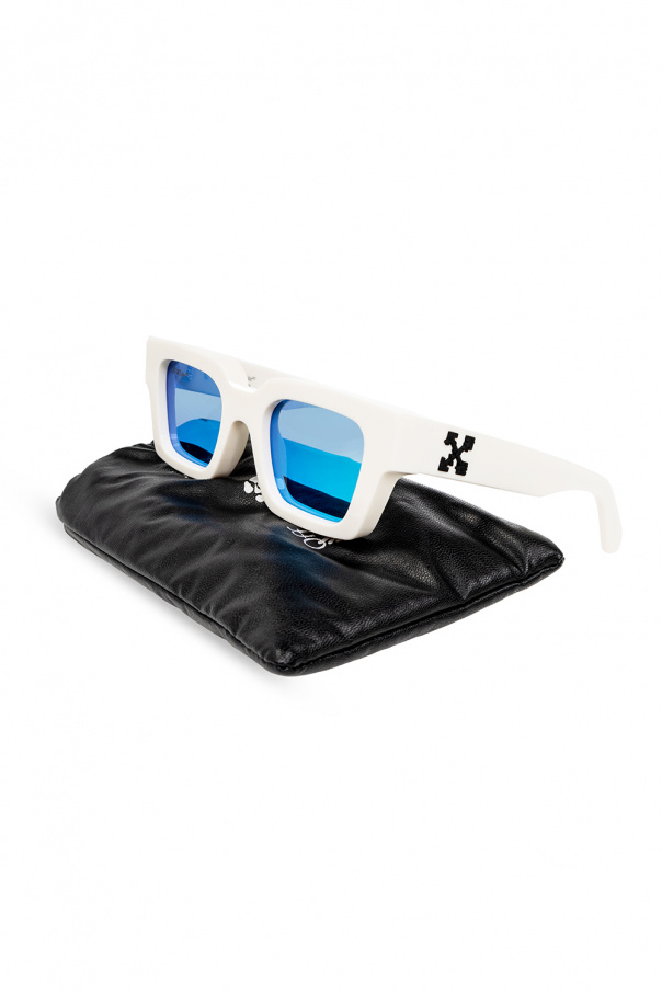 White ‘Virgil’ sunglasses from Off-White. With square frames, this pair features black tactile branding on the temples and brown lenses with a light blue mirror effect which ensure 100% UV protection. Case included.