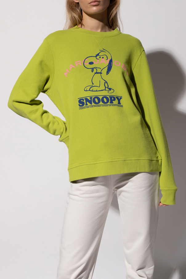Light green crewneck sweatshirt from Marc Jacobs x Peanuts. Crafted from cotton jersey, this style showcases a dark blue and pink graphic print with the brand\'s logo and ribbed trims on the edges.