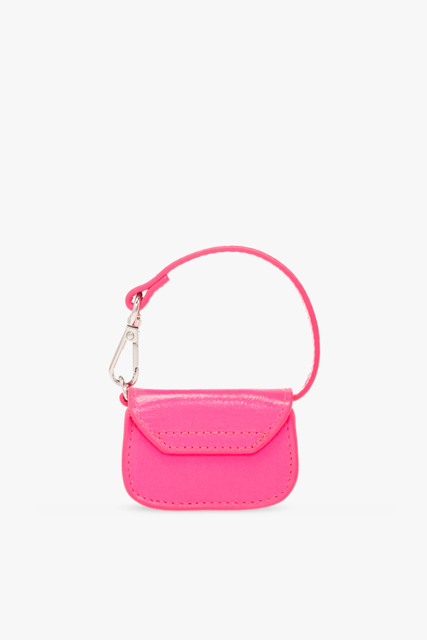 Neon pink ‘1DR MICRO’ keyring with bag charm from Diesel. Made of leather, this item features a snap-fastened flap, logo detail, strap with a carabiner clip and one internal compartment.