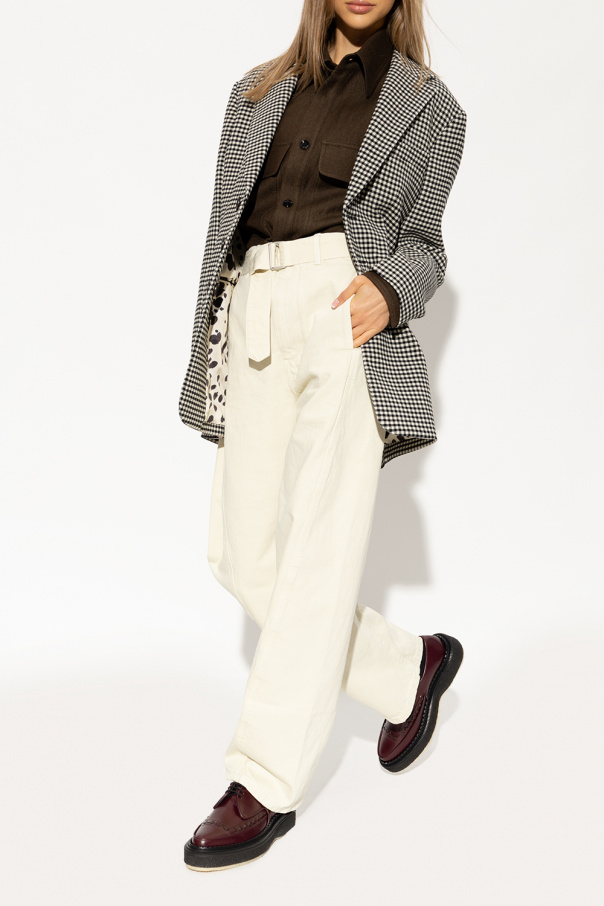 Maroon ‘Type 101’ shoes from Adieu Paris. Crafted from smooth leather, this lace-up model sits on a beige and black textured rubber sole and features distinctive stitching details.