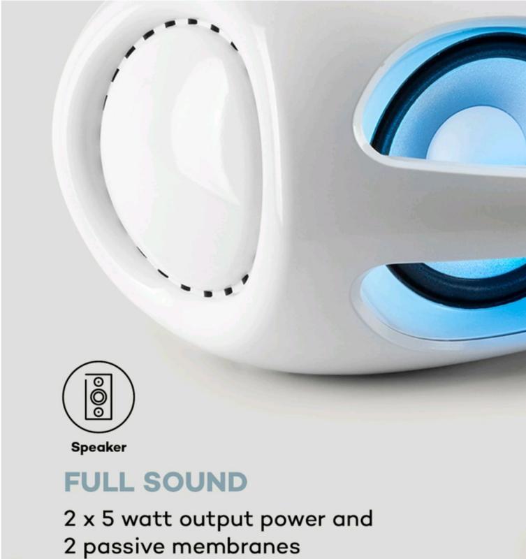 Классический проигрыватель компакт-дисков с вертикальной загрузкой с легкостью воспроизводит форматы CD, CD-R и CD-RW. Вы можете легко воспроизводить файлы с флэш-накопителей MP3 через порт USB, а встроенное DAB+ и FM-радио легко передает самые популярные хиты и последние новости. Дополнительные аудиоустройства можно подключить к бумбоксу через вход AUX. Дополнительной возможностью является подключение смартфонов и планшетов: их можно подключить к Spacewoofer совершенно без проводов через Bluetooth для потоковой передачи музыкальных баз данных. Два стереодинамика мощностью 5 Вт и два пассивных излучателя обеспечивают полноценный звук и впечатляют крутыми световыми эффектами благодаря встроенному светодиодному освещению с управлением Music2Light. Бумбокс с спейсвуфером auna DAB полностью портативен благодаря ручке и работе от аккумулятора: место для дискотеки, где угодно.