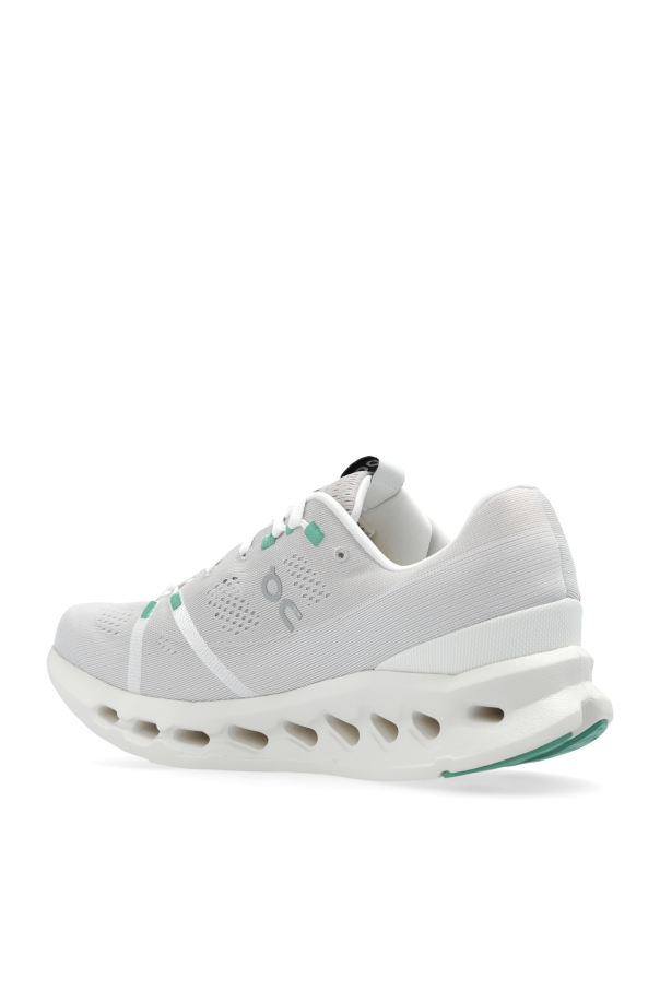 Introducing the ‘Cloudsurfer’ Running Shoes by On Running, a pinnacle of modern design and cutting-edge technology, crafted for athletes who demand both performance and sustainability. With a dominant palette of sophisticated grey, complemented by vibrant green and red accents, these shoes redefine the aesthetic of athletic footwear. The ‘Cloudsurfer’ features a sporty design with an iconic, spatial sole that boasts the brand\'s unique CloudTec® cylinders, providing unparalleled cushioning. The upper is made of a lightweight, breathable mesh that ensures a snug fit and optimal air circulation, keeping your feet cool and comfortable throughout your run. The flat laces, white with green tips, add a contemporary touch, while the solid heel counter offers additional foot support, enhancing the shoe\'s stability and comfort. Engineered with advanced technology, including the CloudTec Phase® for active cushioning and an optimized sole for peak performance, the ‘Cloudsurfer’ is a testament to On Running\'s commitment to innovation. Made with 30% recycled materials and utilizing water-saving dye technology, these shoes not only elevate your running experience but also contribute to a more sustainable future. Why Purchase the ‘Cloudsurfer’ Running Shoes? Exceptional cushioning with CloudTec® technology for a smooth, comfortable run. Lightweight and breathable design, ensuring comfort and optimal performance. Stylish, modern aesthetics with unique color accents. Solid heel construction for enhanced support and stability. Environmentally conscious, made from 30% recycled materials and water-efficient dyes.