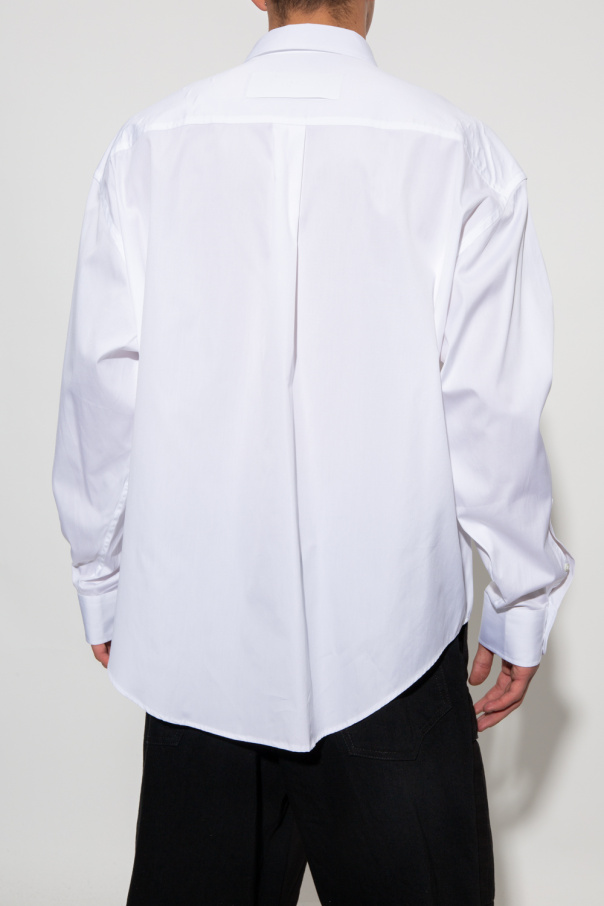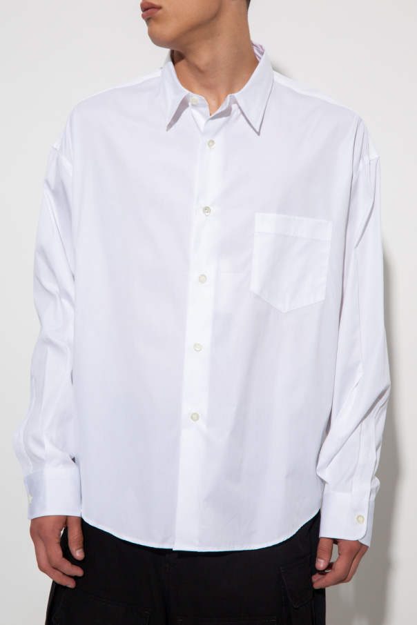 White loose-fitting shirt from Ami Alexandre Mattiussi. Fastened with buttons, this garment features a front pocket, logo patch at the back and long sleeves with buttoned cuffs.