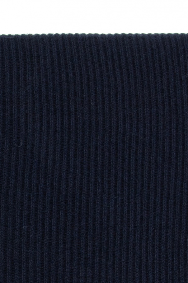 Navy blue scarf from Ganni which was knitted from wool.