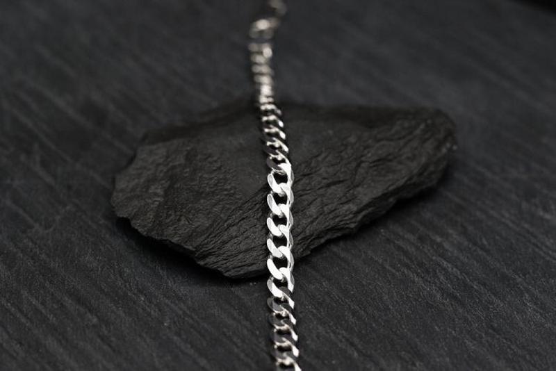 Аксессуар изготовлен из качественной и прочной нержавеющей стали марки 316L. Размер браслета 19-22 см, ширина звеньев 5 мм. Выполнен в виде классического плетения. Браслет отлично сочетается с другими аксессуарами из стали и серебра.