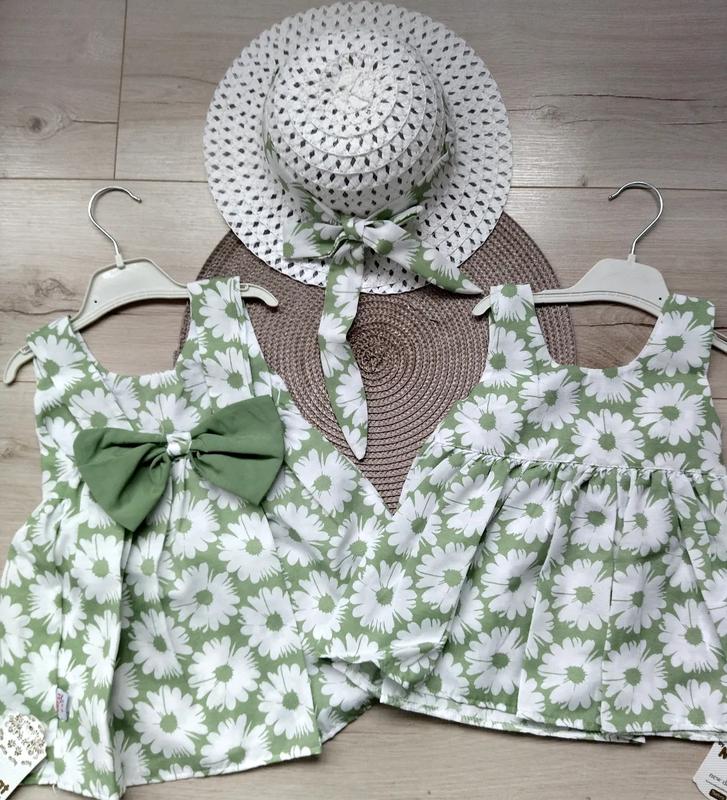 Очень красивые летние сарафанчики для девочек в комплекте с шляпочкой💚🤎