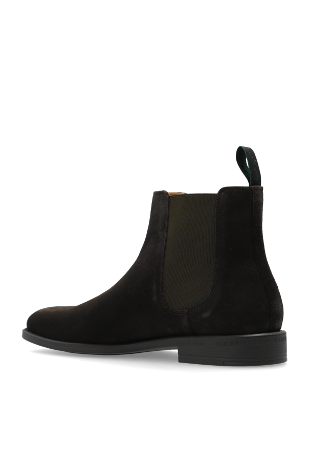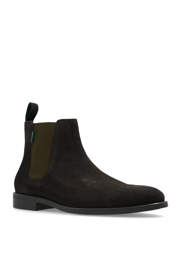 Introducing the \'Cedric\' Chelsea Boots by the esteemed designer, PS Paul Smith. Crafted with meticulous attention to detail, these boots exemplify the harmonious blend of classic elegance and modern flair. The dominant dark brown hue, with its matte, suede-like texture, radiates a subtle sophistication, making these boots a versatile addition to any wardrobe. The boots feature a timeless design with a rounded toe and are constructed from 100% premium leather, both inside and out, ensuring unmatched comfort and durability. The olive-green elastic side panels not only facilitate ease of wear but also inject a dash of contrasting color that sets these shoes apart. A dark green pull tab at the back adds functionality while maintaining the sleek aesthetic. The soles, made of 100% rubber, provide a sturdy foundation with a smooth finish, enhancing the overall elegance of the footwear. The interior\'s cream-gold shade speaks volumes about the high-quality finishing, with the \'PS Paul Smith\' logo subtly placed, signifying the authenticity and luxury craftsmanship synonymous with the brand. Why Purchase the \'Cedric\' Chelsea Boots? Exclusive design by PS Paul Smith, ensuring a unique and stylish addition to your collection. Luxurious 100% leather construction for supreme comfort and longevity. Distinctive color contrast and textures add a modern twist to a classic silhouette. Easy slip-on functionality complemented by the durability of a rubber sole. Versatile styling options, from casual looks to more formal ensembles.