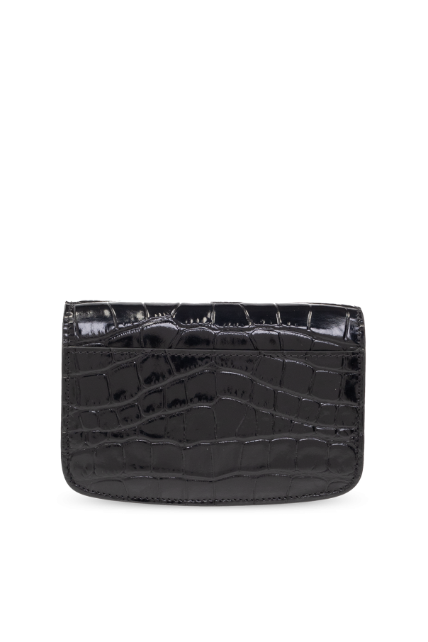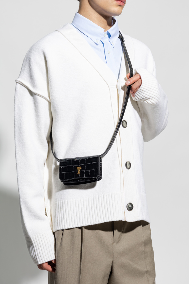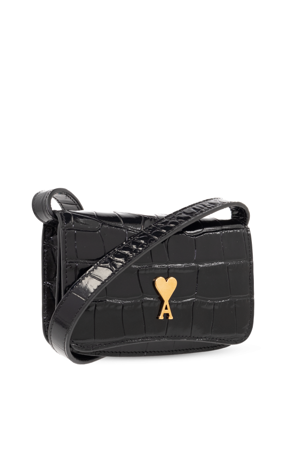 Mini shoulder bag in black from Ami Alexandre Mattiussi. Made from leather with a crocodile skin effect, this design fastens with a snap and showcases a gold-tone ‘Ami de Coeur’ metal plaque on the front , detachable and adjustable shoulder strap and one internal compartment with two slip pockets.