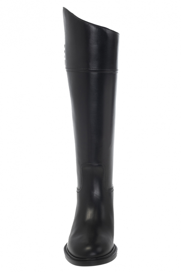 Black boots from Fendi. Crafted from leather, this model sits on a black leather sole and features an almond-shaped toe and an embossed logo pattern.