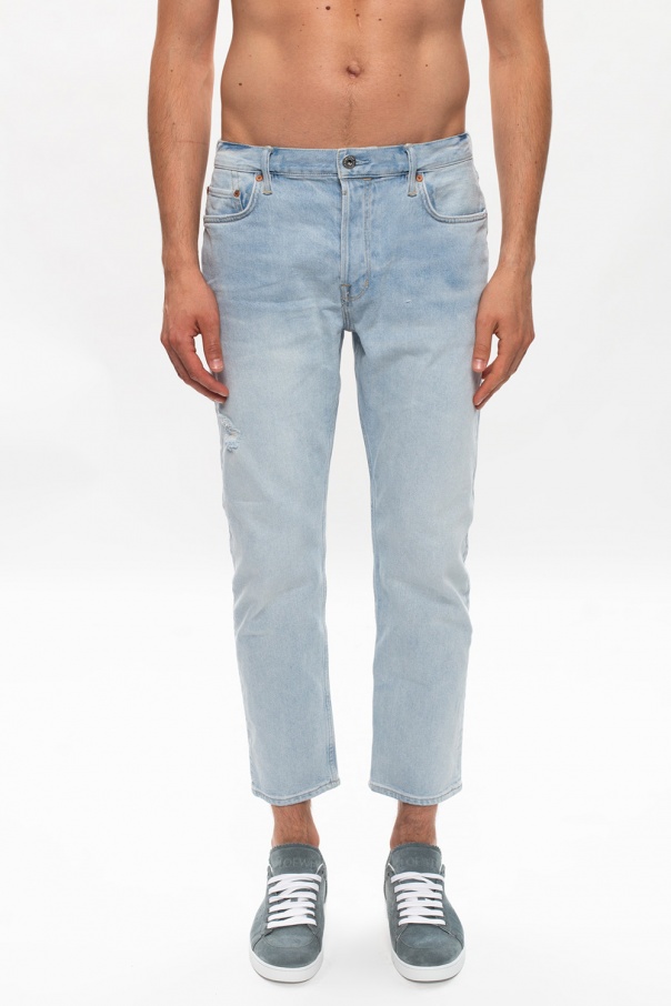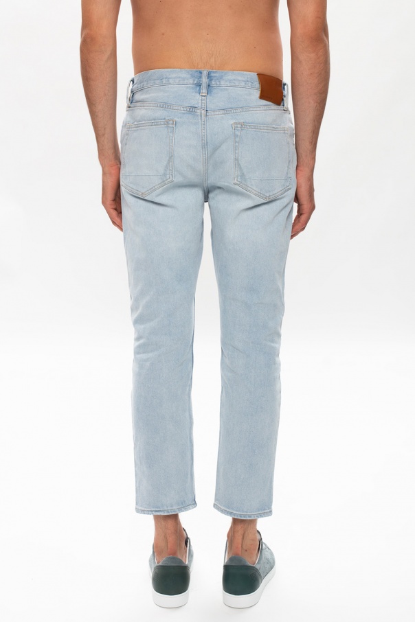 Blue ‘Dean’ jeans from AllSaints. Fastened with buttons, this straight leg design features a brown logo patch and five slip pockets.