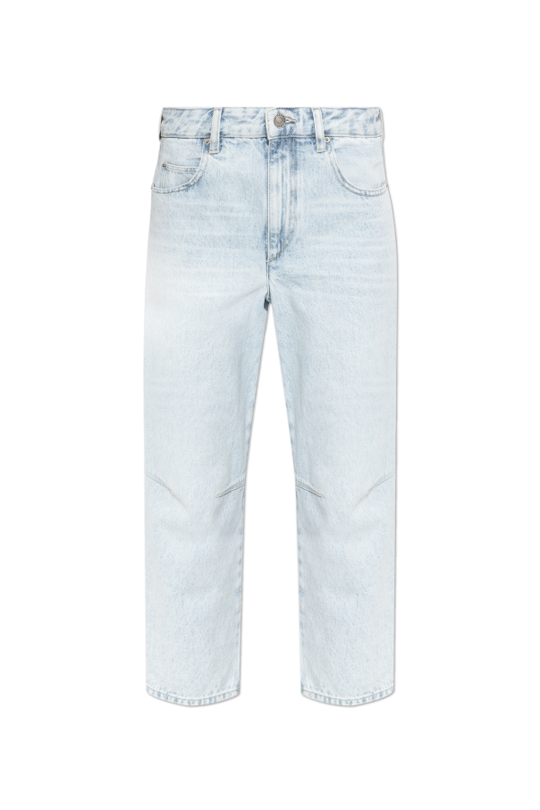 Introducing the distinguished Janet Jeans from the illustrious Marant Etoile collection, an exquisite embodiment of understated elegance and casual charm. Crafted from premium 100% cotton denim without stretch, these jeans offer a timeless, classic silhouette. The boyfriend cut provides a relaxed, straight fit that gracefully skims the ankle, while the lightly faded blue hue exudes a laid-back aesthetic. The design is accentuated by a traditional five-pocket style, complete with button fastening and metal rivets adorning the pockets, enhancing durability and style. Styled effortlessly with a casual beige t-shirt and brown suede fringe boots, the Janet Jeans seamlessly integrate into any wardrobe, offering versatility and comfort for everyday wear. The meticulous craftsmanship is evident in the texture and robust stitching, ensuring a garment that is as enduring as it is fashionable. Why choose this product? Classic boyfriend cut for relaxed elegance. Premium 100% cotton denim for timeless appeal. Versatile, lightly faded blue for a casual look. Secure button fastening with durable metal rivets. Seamless integration into various styles.