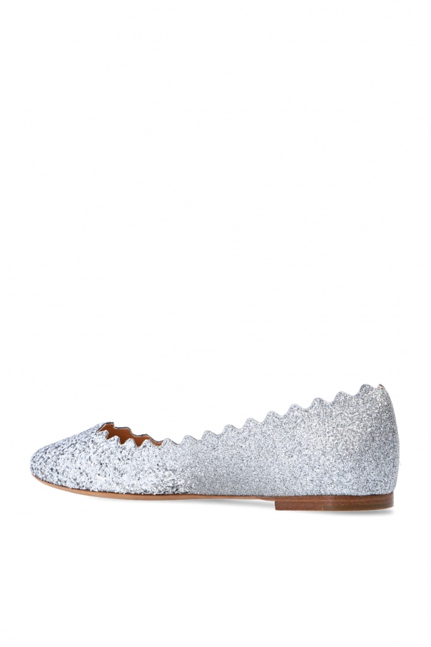 Silver-tone ‘Lauren’ ballet flats from Chloé. Spruced up with glistening glitter and sequins, this pair boasts leather construction with scalloped trim.