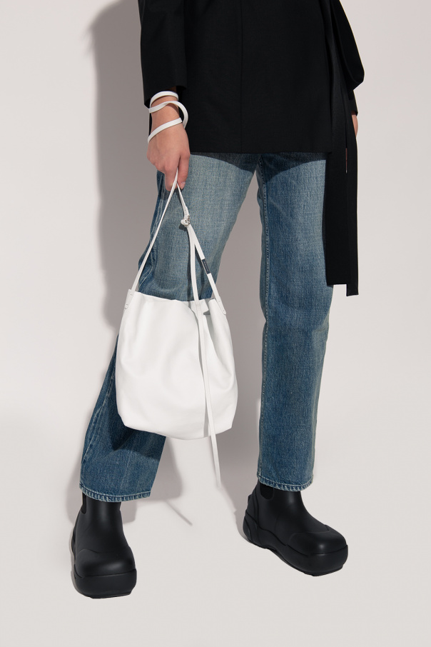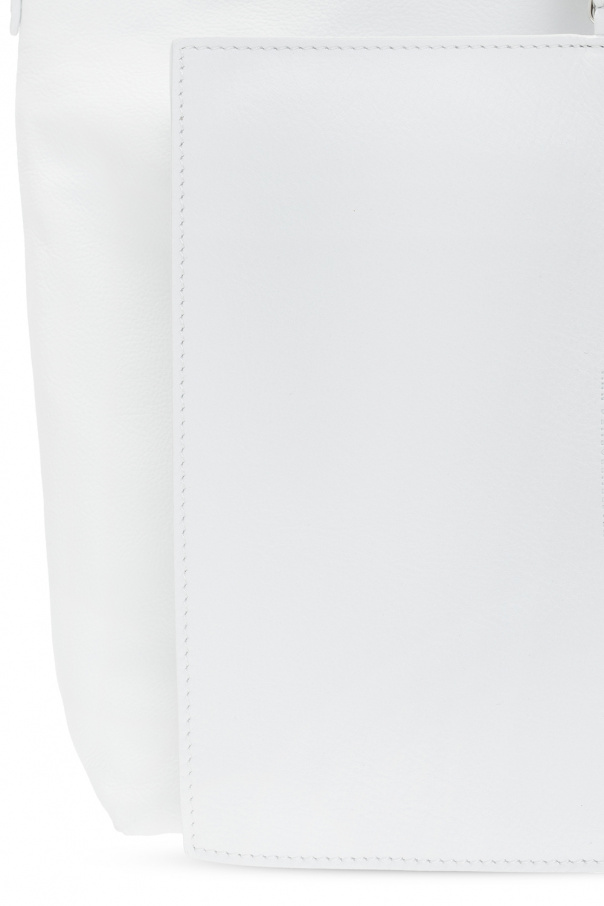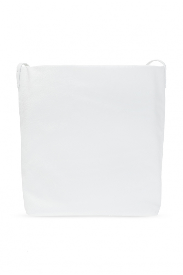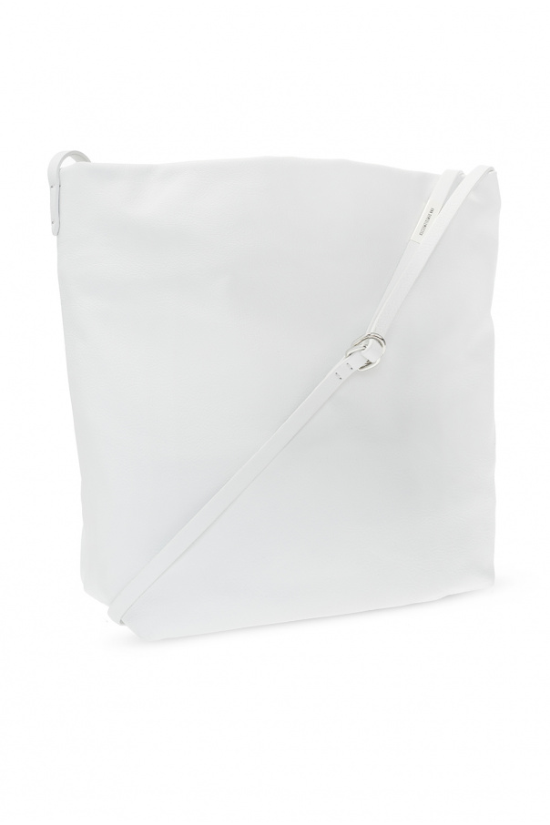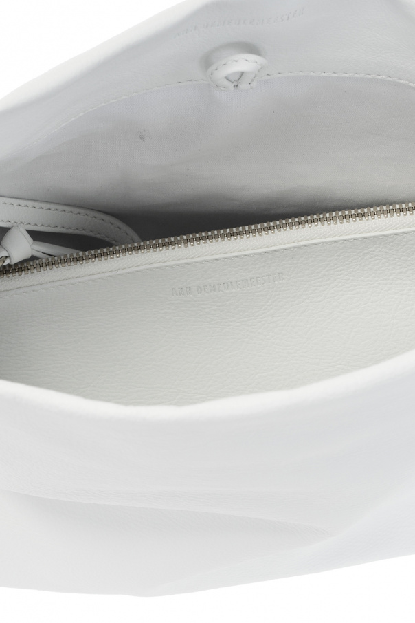 White ‘June Small’ shoulder bag from Ann Demeulemeester. Crafted from leather, this design fastens via a button and features an adjustable strap accentuated with a silver-tone application with an embossed logo and one internal compartment with a removable zipped pouch.