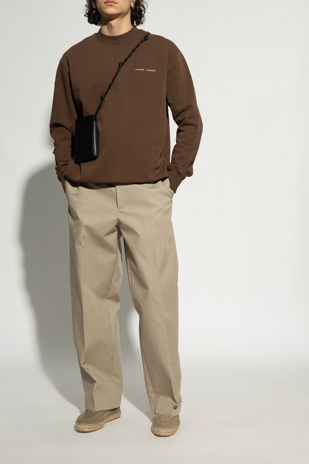 Greyish green loafers from Manebi. Made of suede, this model sits on a natural jute sole with a thin layer of beige rubber and features an embossed logo at the back.