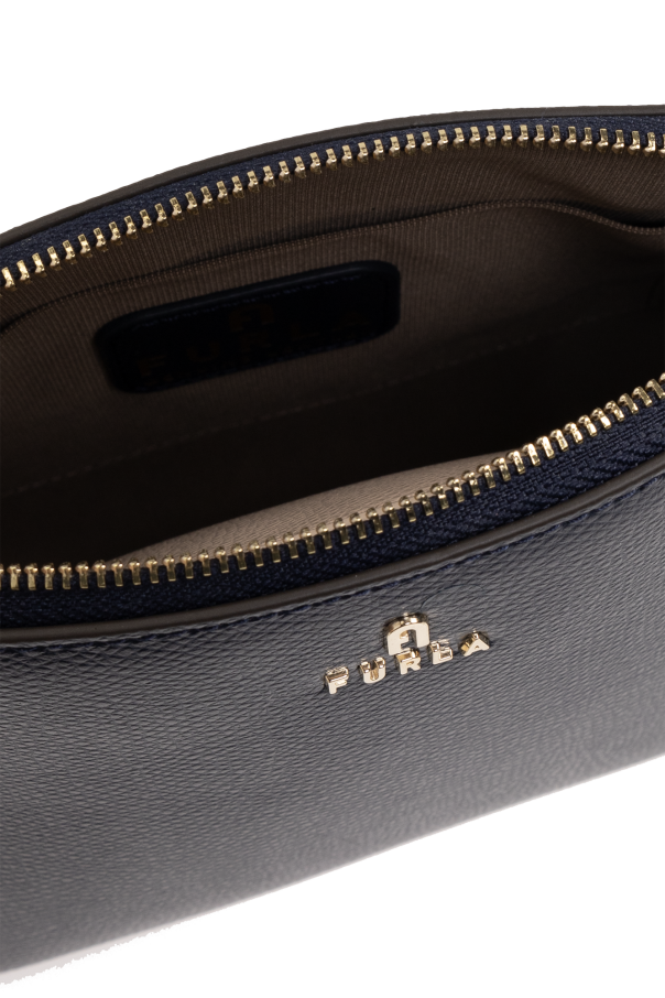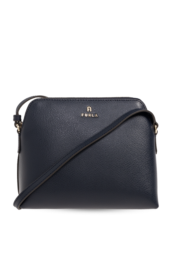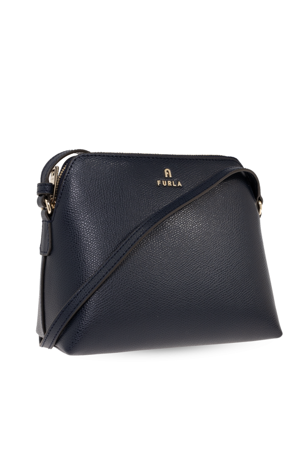 Navy ‘Camelia Mini’ shoulder bag from Furla. Made of grained leather, this model features a zip fastening, logo detail, adjustable shoulder strap, gold-tone metal hardware and one internal compartment with one slip pocket and a zipped pouch in pink.