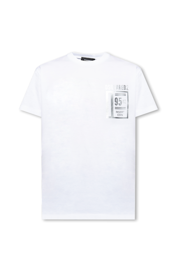 White crewneck T-shirt from Dsquared2. Made of cotton, this short sleeve design is decorated with a silver-tone logo print.