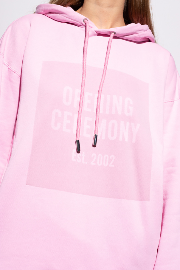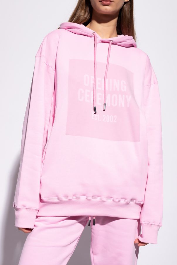 Pink sweatshirt with a drawcord-adjustable hood from Opening Ceremony. Crafted from cotton jersey, this hoodie showcases a graphic print with the brand\'s logo on the front and ribbed trims on the bottom hem and cuffs.