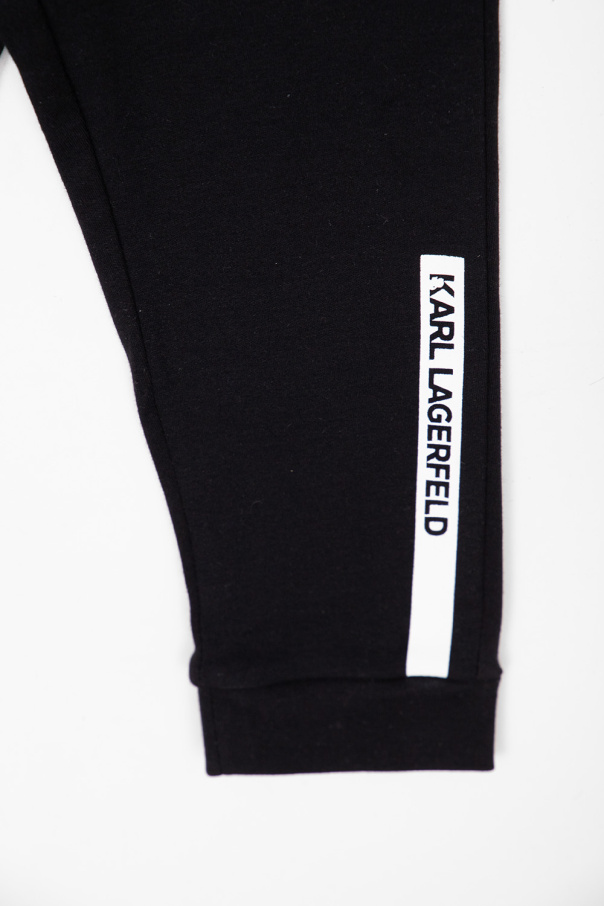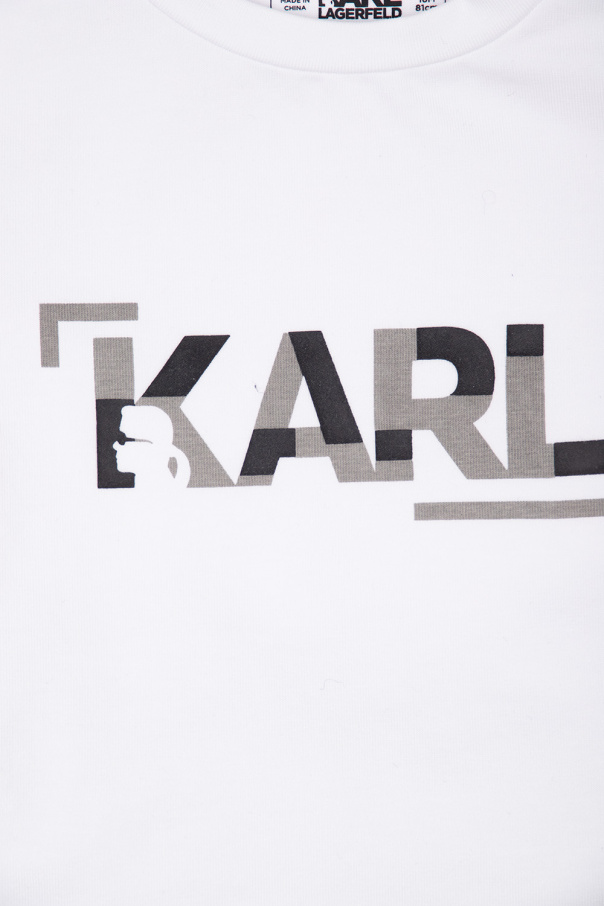 White and black T-shirt and trousers set from Karl Lagerfeld Kids. Made of cotton, this item is decorated with an animal pattern.