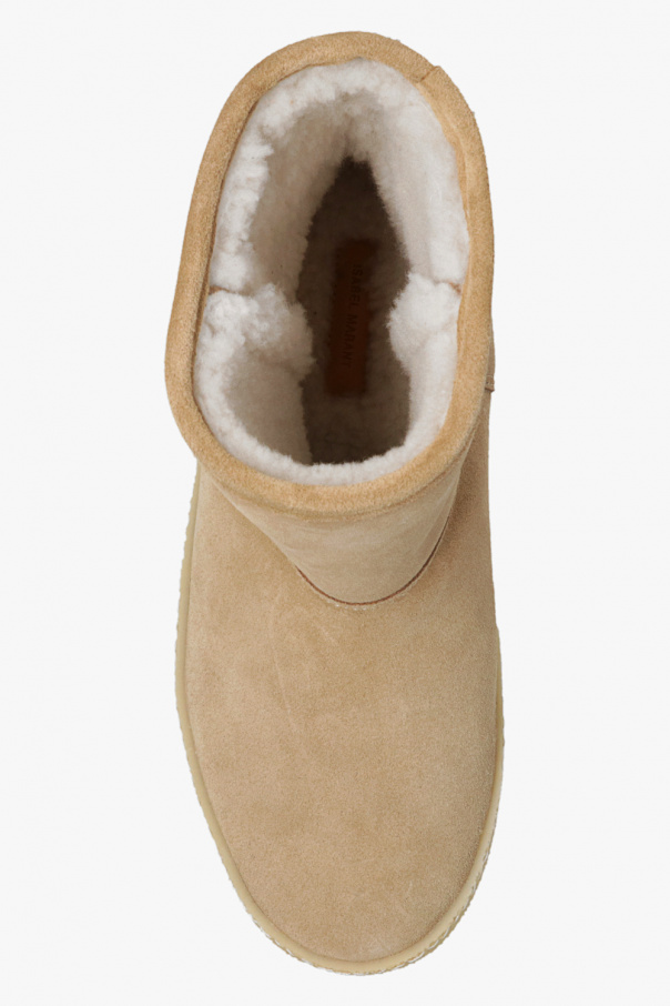 Beige ‘Komee’ snow boots from Isabel Marant. Made from calf suede with a slip-on silhouette, this model sits on a beige rubber sole and features a padded shearling lining.