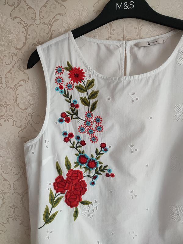 Блуза от бренда Tu woman exclusive, состояние идеальное, без дефектов, ткань 💯% коттон, по ткани сетка (перед), размер указан 12, ориентируйтесь на замеры: длина 62, ПОГ 49, ширина низ 58, есть нагрудные вытачки.