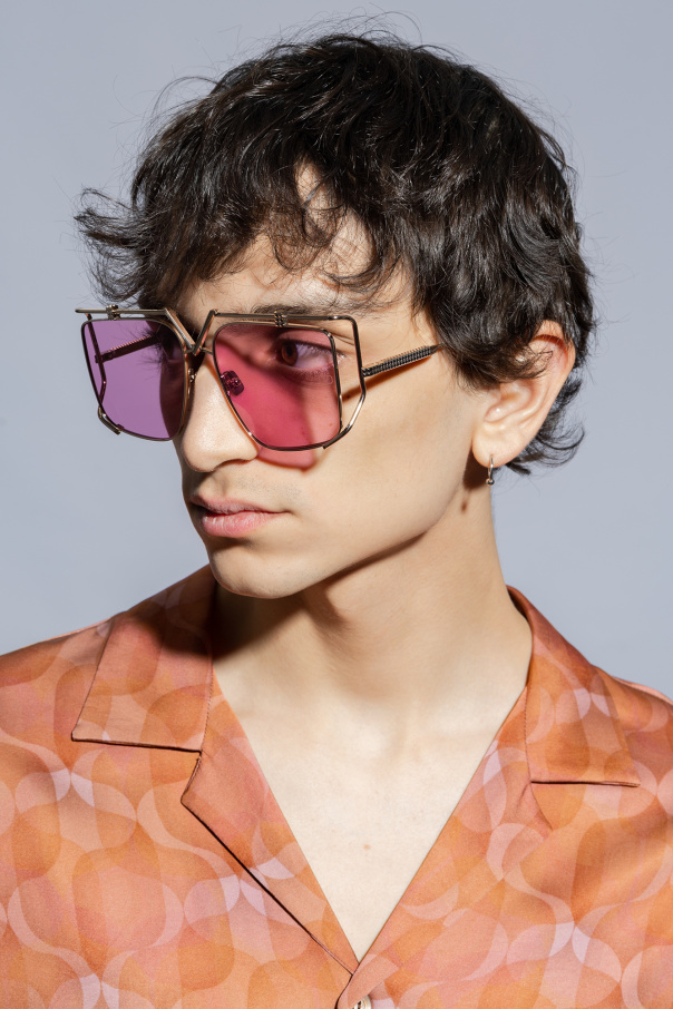 Silver-tone sunglasses from Valentino Eyewear. This square frame pair features side inserts with a logo and pink lenses with 100% UV protection. Case included.
