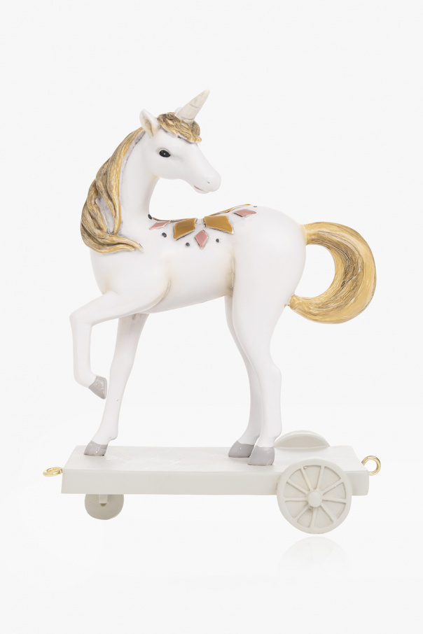 Multicoloured birthday train from Konges Slojd. This uniquely handcrafted item will dress every birthday table with stylish finesse, and is usable for every age. It showcases a ballerina walking with mushrooms, a unicorn, pears and a peacock. The set also includes candleholders and numbers.