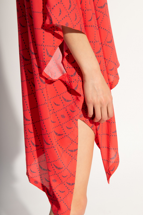 Orange and red beach top from Zadig & Voltaire. Spun from viscose with an oversize silhouette, this style showcases a dark grey pattern with the brand\'s logo.