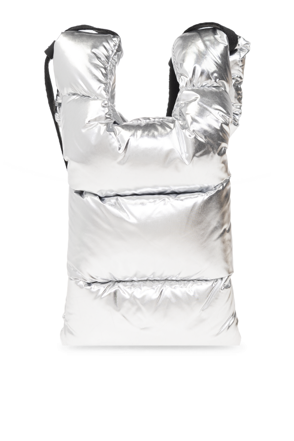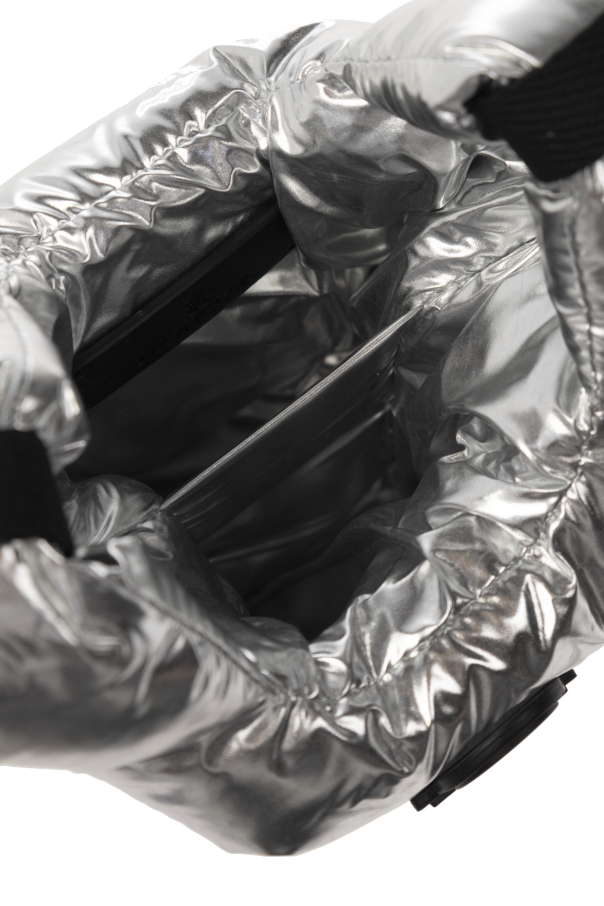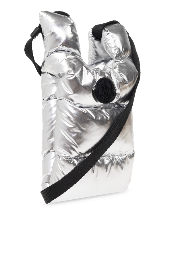 Silver-tone ‘Legere Small’ quilted shoulder bag from Moncler. Crafted from technical material with a glossy finish, this design showcases a logo patch on the front, two handles, one adjustable shoulder strap with a leather trim and one internal compartment.