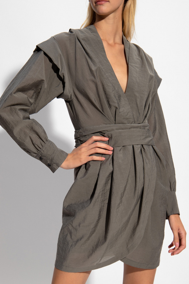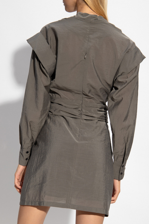 Grey dress from Iro. Enriched by all-over gathers, this style features a V-shaped neckline, a back zip fastening, an asymmetrical hem and long sleeves with button cuffs.
