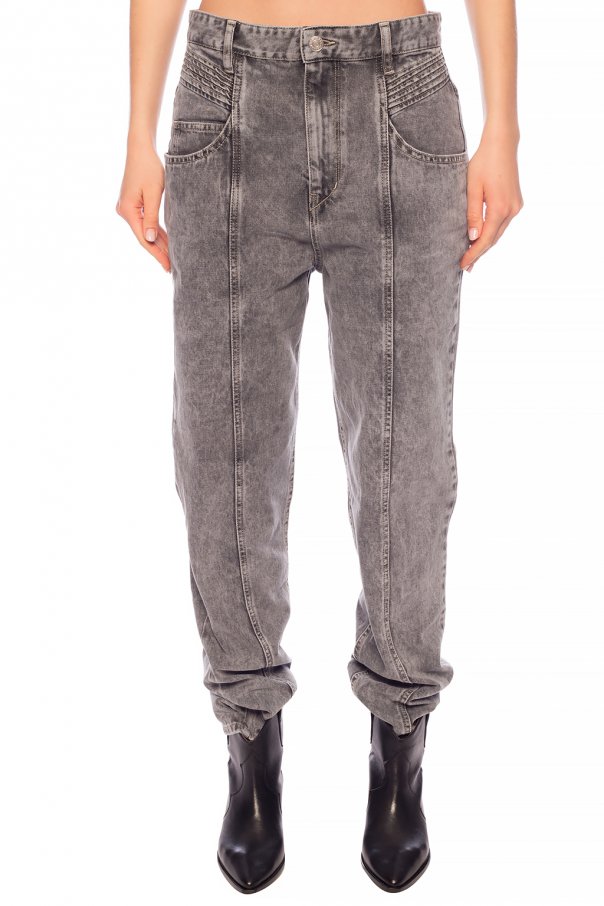 Grey high-waisted jeans from Isabel Marant Étoile featuring zip fly with top button fastening and 5-pocket design.